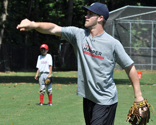 I’m in Fairfax,VA for an exiting morning at Fairfax High School(or 3501 Rebel Run to the locals). A Nationals player is coming. I answer some Bryce Harper questions at the 106.7 The Fan booth to claim a Who But W.B. Mason Collectible Truck, and then I put on my t-shirt and it said ” Bryce Harper Baseball Pro camp.” Wait, this camp is for the 19 year old baseball fanatic and phenom your outfielder and All-star number 34 Brrrryce Harper! There are kids here who are 14 years old, so there are people who are only FIVE years younger than him! I really am crazy ’bout the Nationals and Nuts about the Nats.