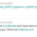 Last night while I was sleeping, my Twitter exploded again. One of my very favorite players, Nationals All–Star SS Ian Desmond, followed me and said to all of his followers: He accidentally left the t off in MattsBats.com, but that… Read More ›