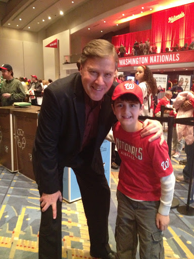 Then I met another of Matt’s Bats reader and Twitter follower, F.P. Santangelo, the Nats TV color commentator.  The funny thing is when he met me he said that he thought I was a “Catfish,” meaning that I was not really an 8 year old.  (I may not be a Catfish, but I am a Matt-fish and a Nat-fish!).  He took an official photo of me and my family, but also asked someone to take a photo with his camera so he could tweet it too.