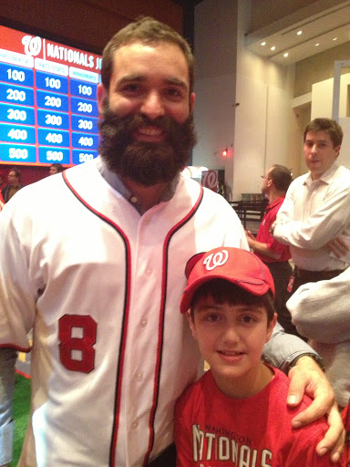 One of the players I was most looking forward to meeting was Danny Espinosa, whose girlfriend has been writing to me on Twitter a lot.  I was hoping Sara would be there too, but I guess only Danny could come.  We spent a long time looking for him and finally found him signing autographs for other fans.  I yelled over to him and he recognized me and said “Hi Matt!”  We waited for him to finish his autograph session and then I was able to take a picture with him quickly and he signed a ball for me.  He even let me keep the pen. A lot of people were talking about his beard.  It was pretty big.  He actually kind of looked like the Lorax.