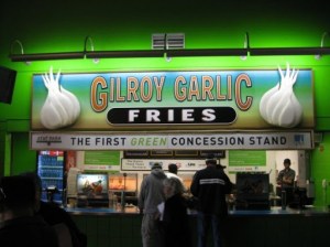 AT&T Park is famous for its garlic french fries that you get from the Gilroy Garlic Fries stand. They also serve regular fries, too, but it’s their Garlic Fries that are the most popular. They even come with mints!