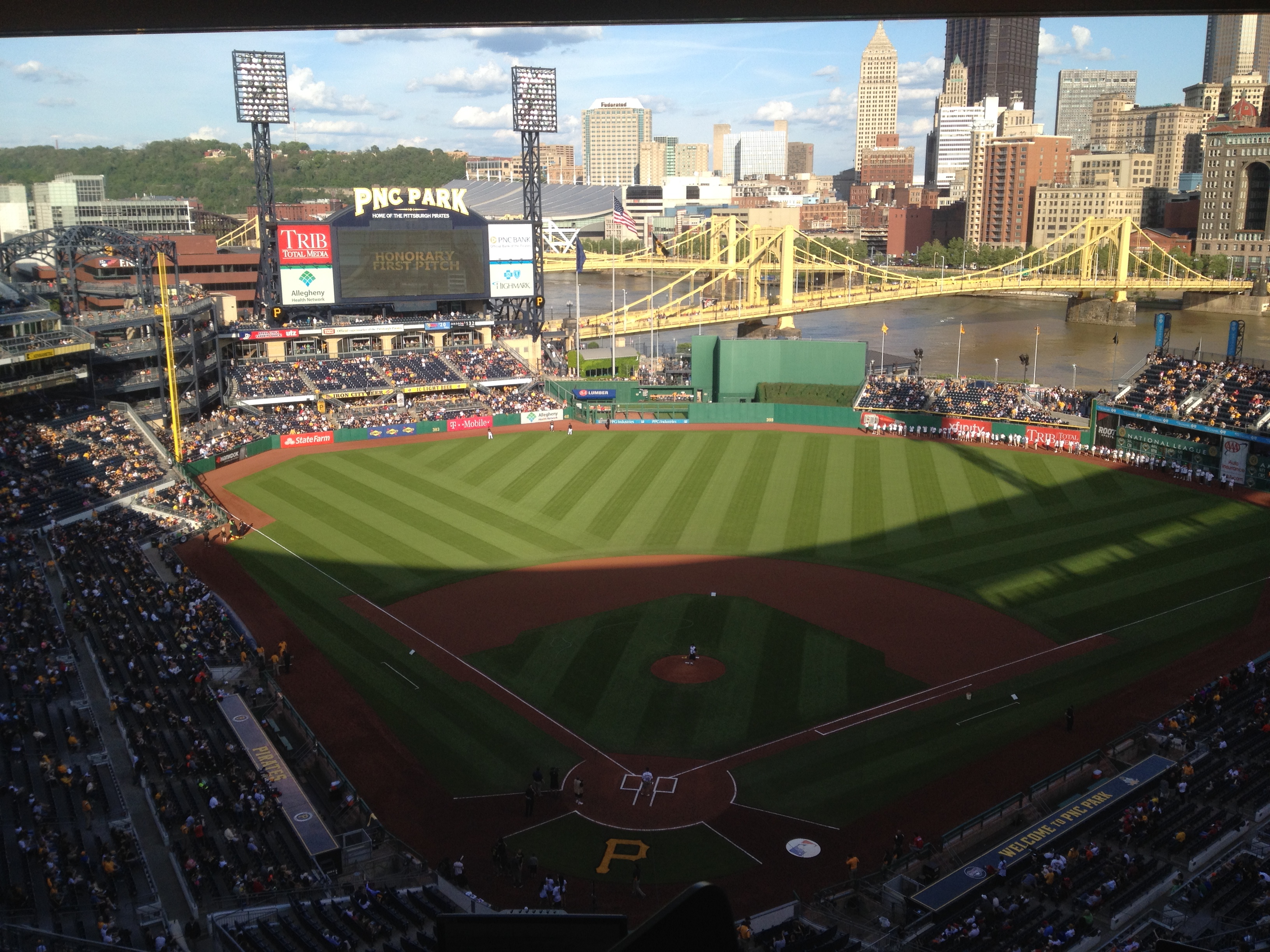 Do you think Dave and Charlie can really see what kind of pitch was thrown from all the way up in the broadcast booth? Nationals Park has the highest broadcast booth in all of major league baseball, and the stadium I visited them in, PNC Park, is #2. There’s no way they can tell the pitches from that high. But they they do do a lot of research before the game on each pitcher so that they know what kind of pitch they throw. They know that Stephen Strasburg can throw a fastball in the low/mid-90s, and his change-up is in the high 80s. So just by looking at the speed on the radar gun shown on the scoreboard, they pretty much can tell what was thrown.