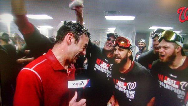 DK- The clinch was a great night. The guys were really enjoying themselves, and I tried to work through all the beer and Champagne so that everyone back home could hear from all the players and staffers. I’m glad fans seemed to enjoy it.