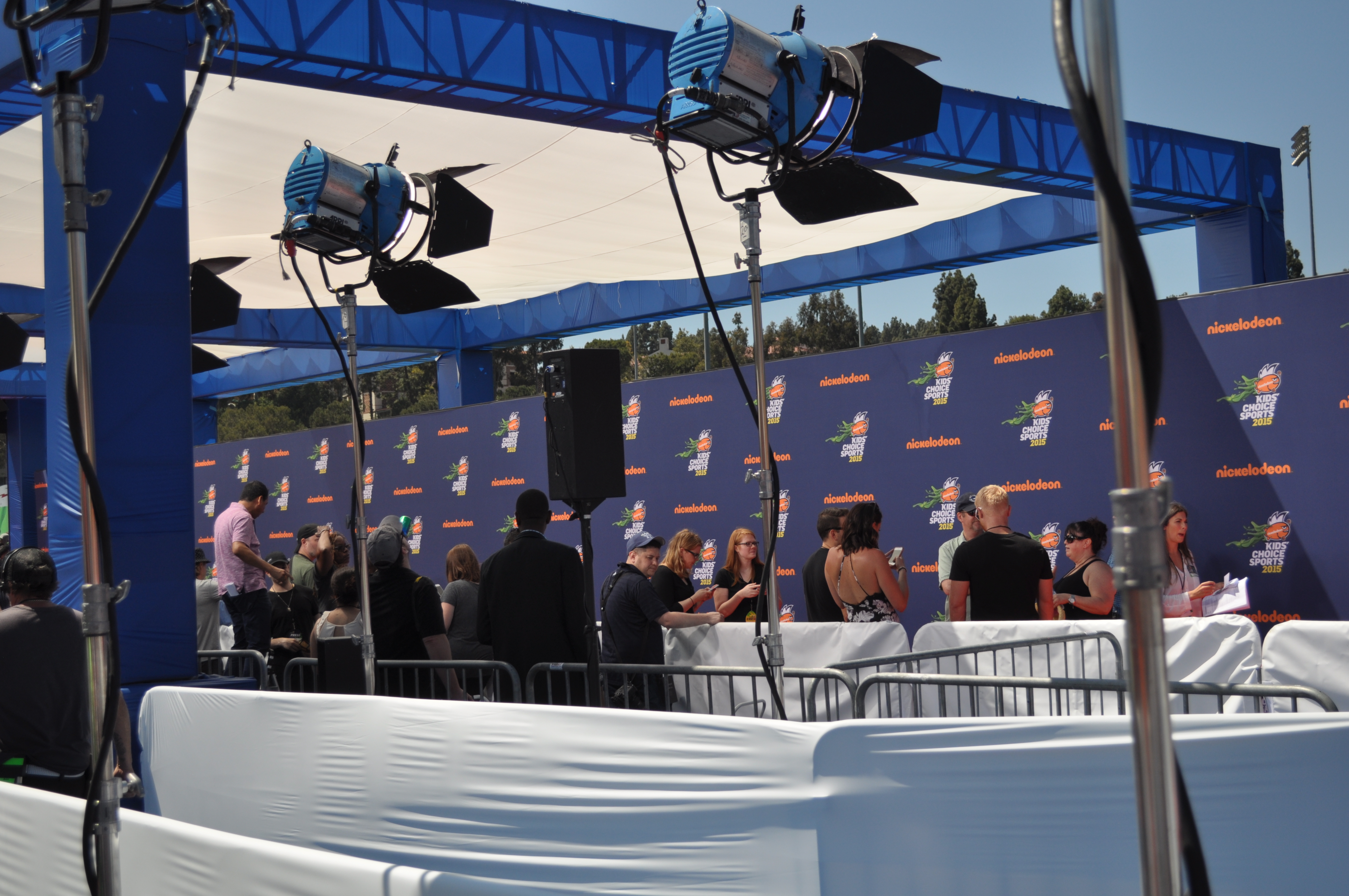 When talent walked down the carpet, they first were photographed in front of the big blue “step and repeat” screen. The photographer’s area was very well lit with huge lights, but was tented to prevent too much sunlight from affecting the pictures.