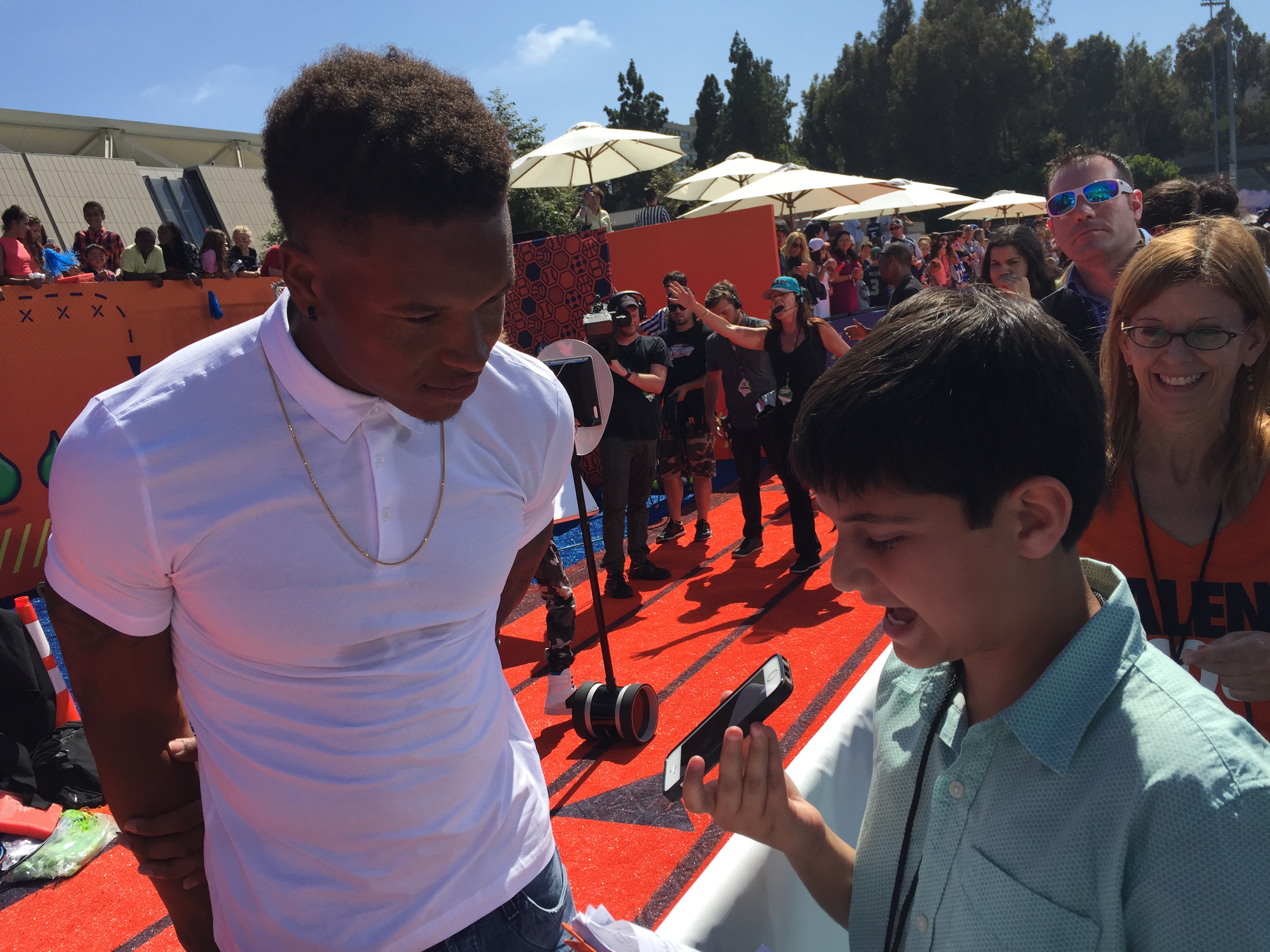 In addition to the athletes, there were also a lot of Nickelodeon TV stars on the carpet. I took a selfie and a posed pic with Owen Joyner, Jaheem Toombs, and Jack De Sena from the show “100 Things To Do Before High School.”